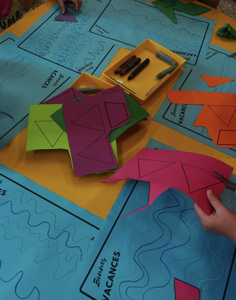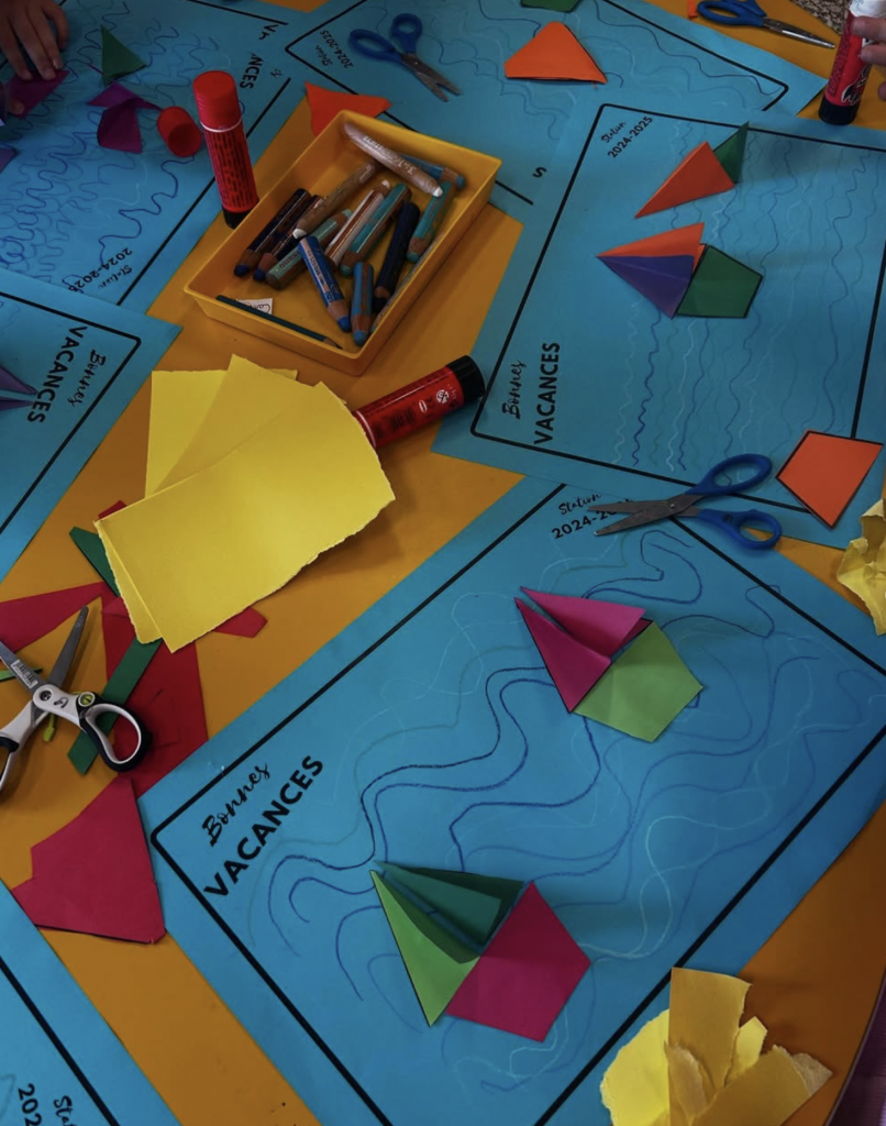 Ces pochettes seront bientôt agrafées, puis remplies de souvenirs : dessins, bricolages, projets… autant de petites merveilles qu’ils seront fiers de rapporter à la maison à la fin de l’année