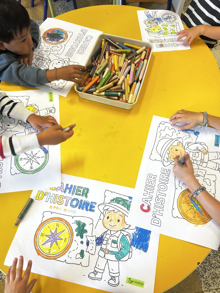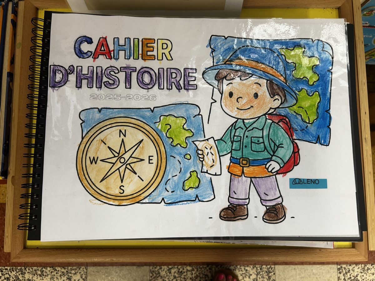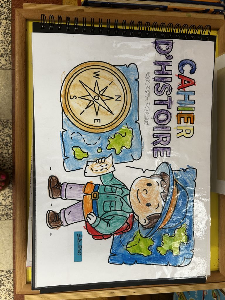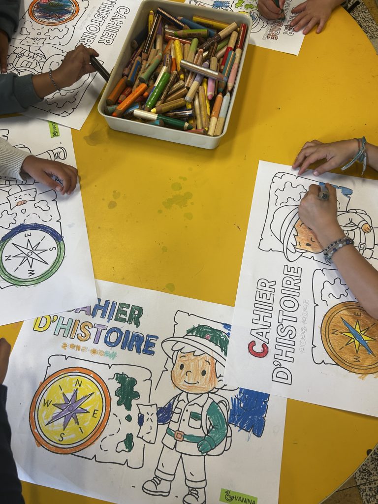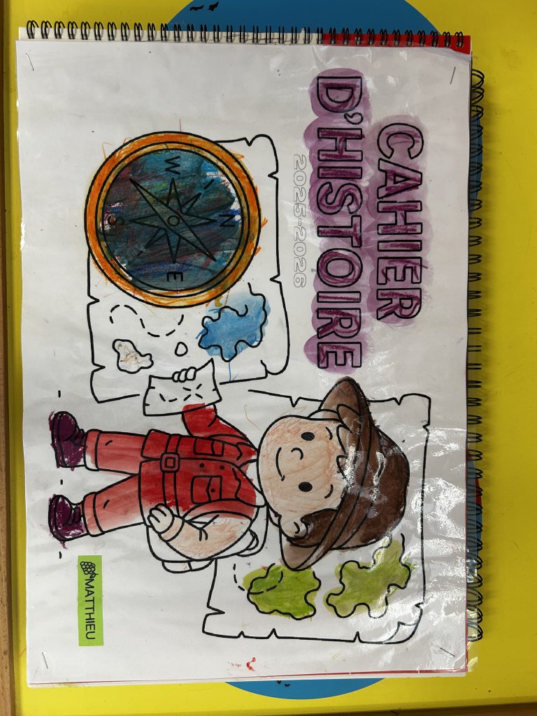 Et qui dit nouveau projet… dit aussi nouvelle couverture pour notre cahier d’histoire 🎨📖 !