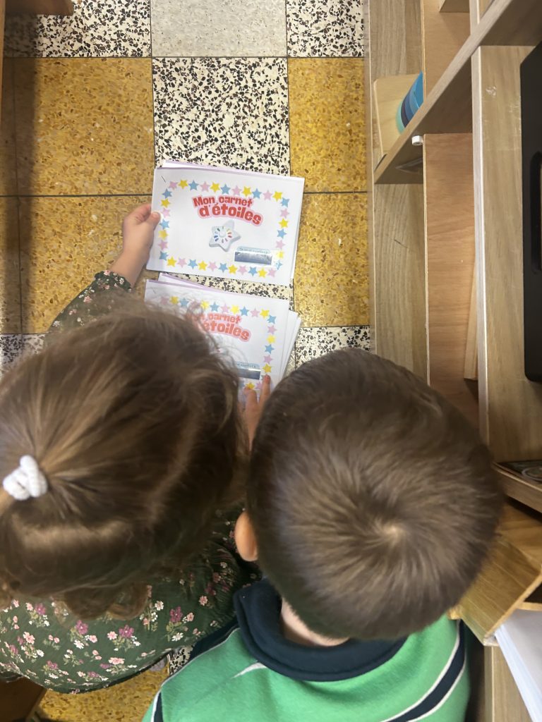 J’ai voulu aller plus loin en créant pour eux le carnet des étoiles, un petit carnet personnel qui les suivra jusqu’à la fin de la maternelle.