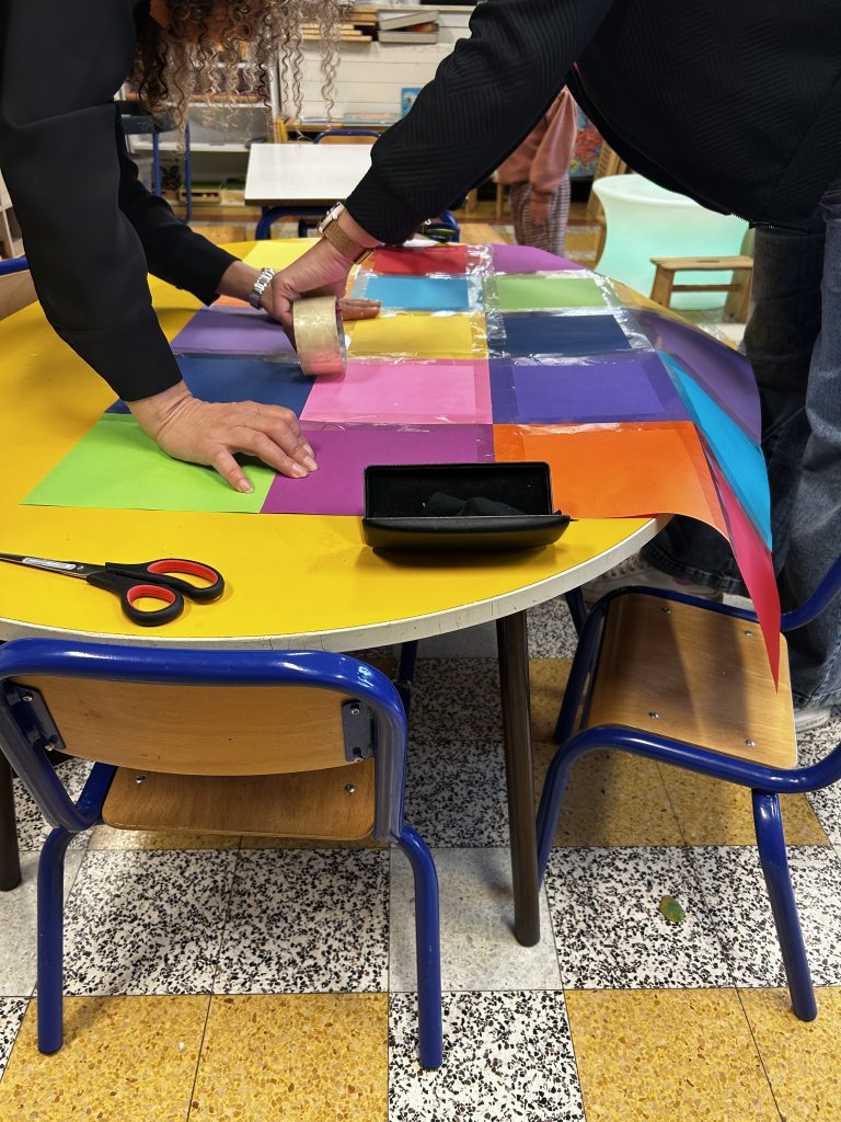Enfin, les madames ont tout assemblé… et le résultat est juste waouh 😍 : une œuvre vibrante, pleine de vie, de couleurs et de bonne humeur, qui sera exposée lors de l’événement Artists for Live. 💫