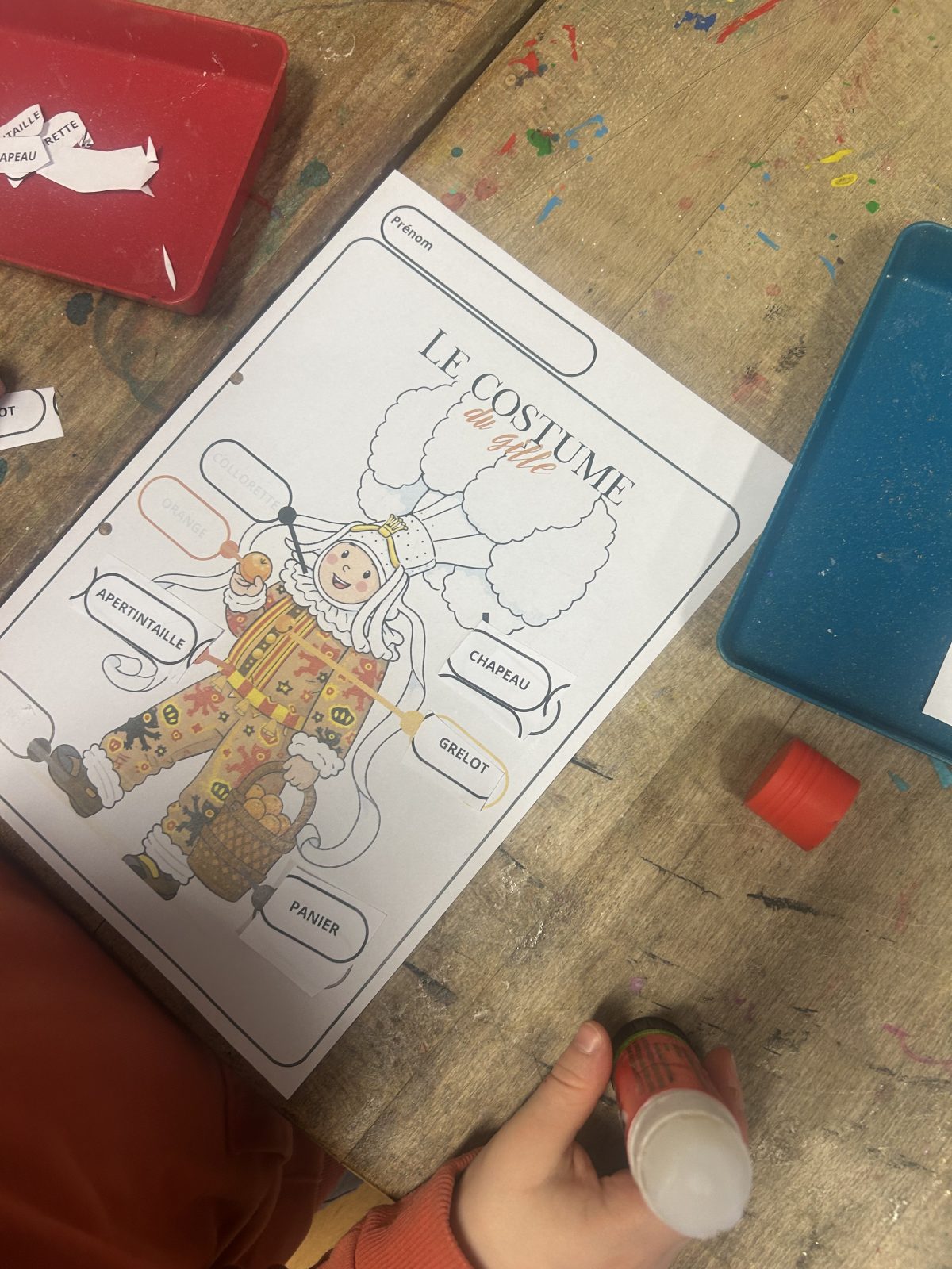 Chaque année, la période du carnaval est une formidable occasion de faire découvrir aux enfants les traditions de notre région. À Binche, le gille fait partie du patrimoine et suscite toujours beaucoup de curiosité chez les petits. Nous avons donc pris le temps d’explorer ensemble les différentes parties de son costume à travers une activité de langage et d’observation adaptée aux moyens et aux grands.