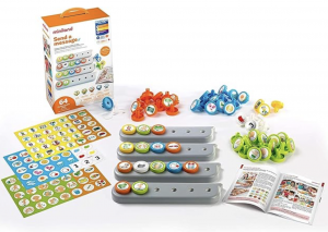 Les enfants écoutent ensuite une phrase enregistrée sur la barre enregistreuse. Ils doivent alors, seuls, retrouver les bons symboles et les placer dans l’ordre pour “écrire” la phrase entendue.